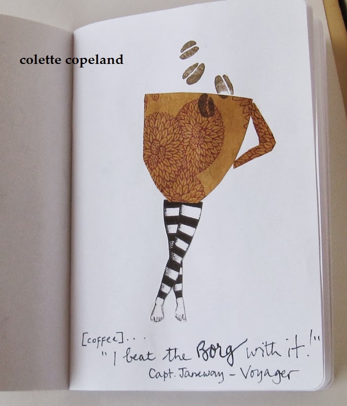 I have two pages to go and it's finished. Almost. I'll add some finishing touches, do the cover, and send it off to New York. It's been exhilarating. Once I had my subject (coffee), I was assaulted with ideas. But I know when to stop :)