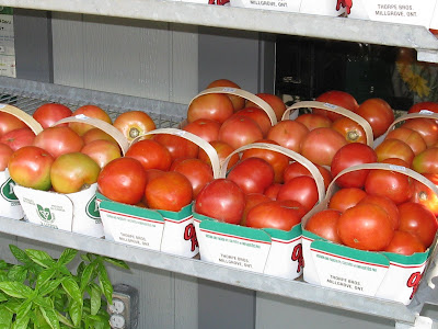 The time of the cherries has passed and given way to peaches and nectarines (I eat them daily) and field tomatoes and corn. All grown in Southern Ontario, fresh and juicy.